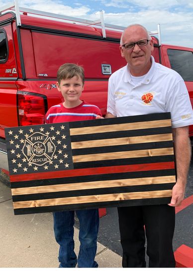 We donated this Thin Red Line Flag to Bella Vista 's Fire Chief, Steve Sims.